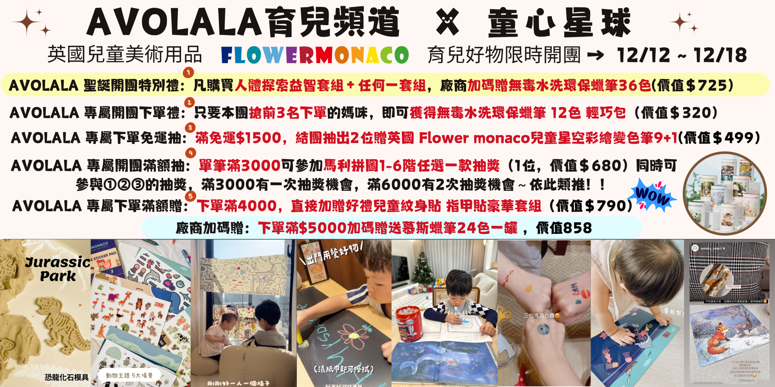 AVOLALA育兒頻道X童心星球限時開團12/12-12/29