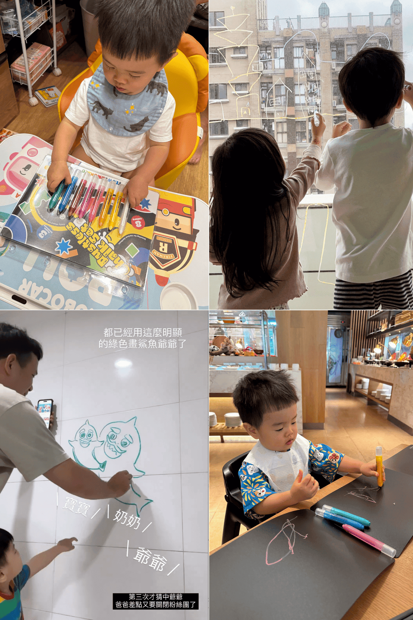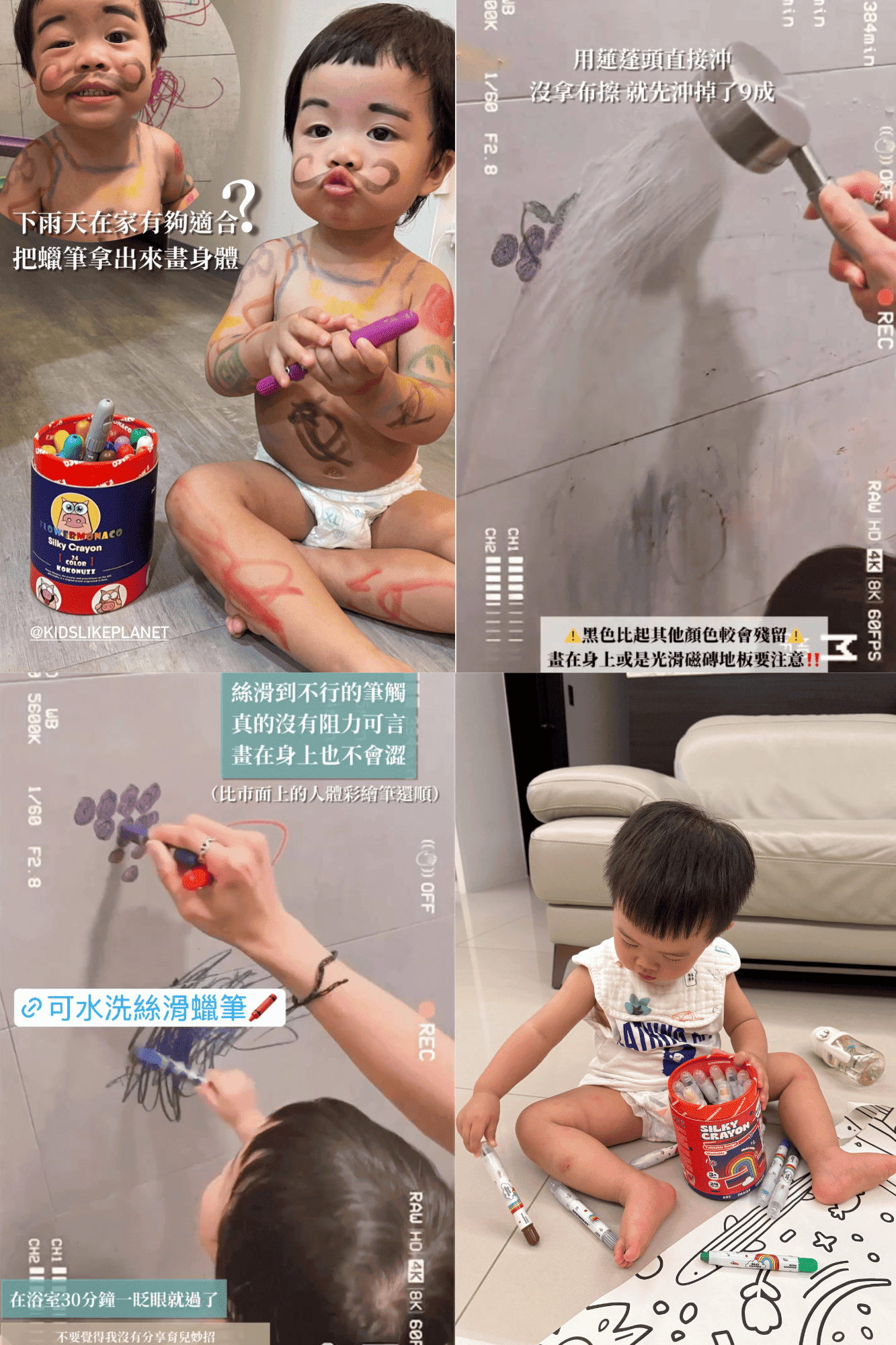 每支蠟筆皆含筆套,不易髒手,濕紙巾皆可擦拭筆痕