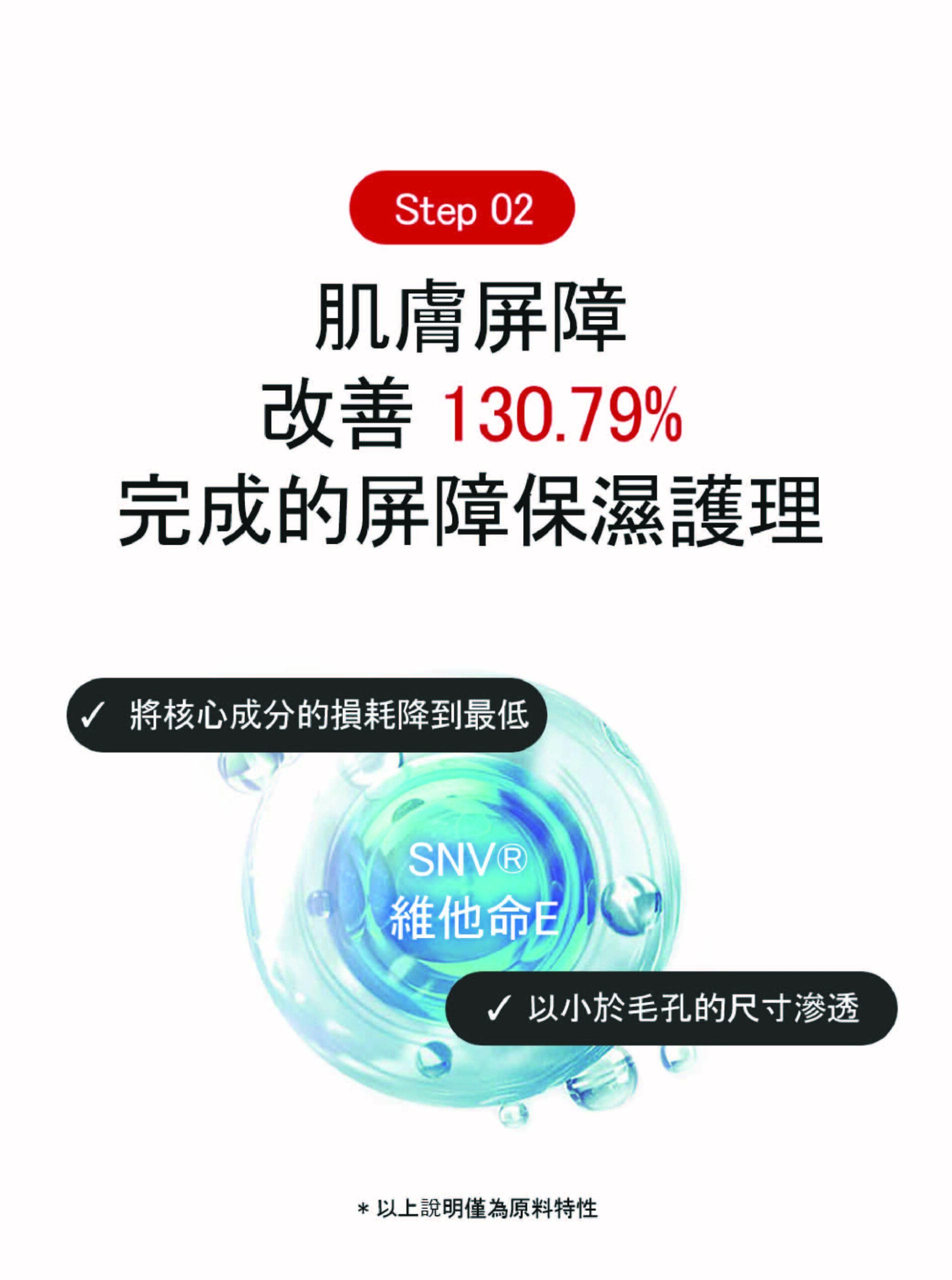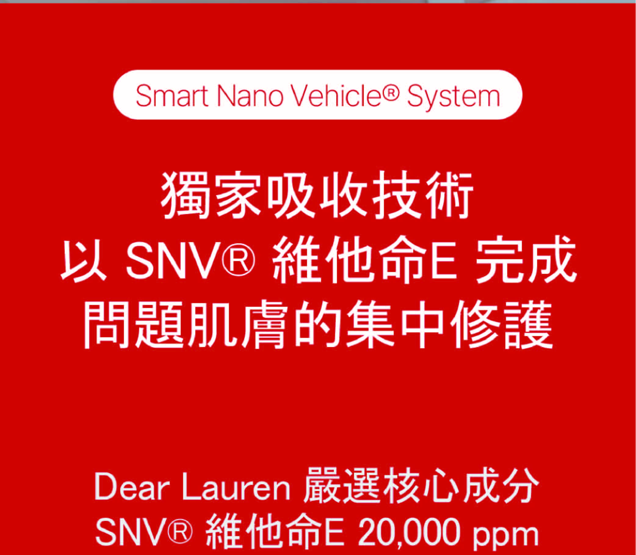獨家吸收技術以SNV 維他命E完成問題肌膚的修護