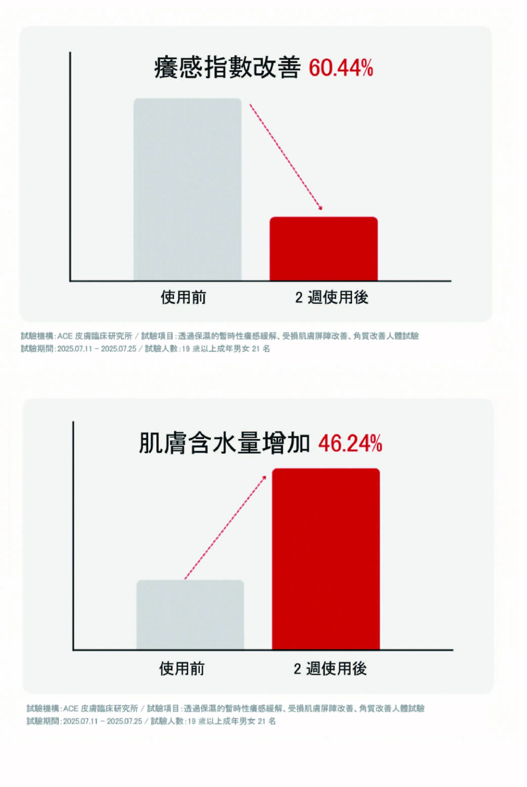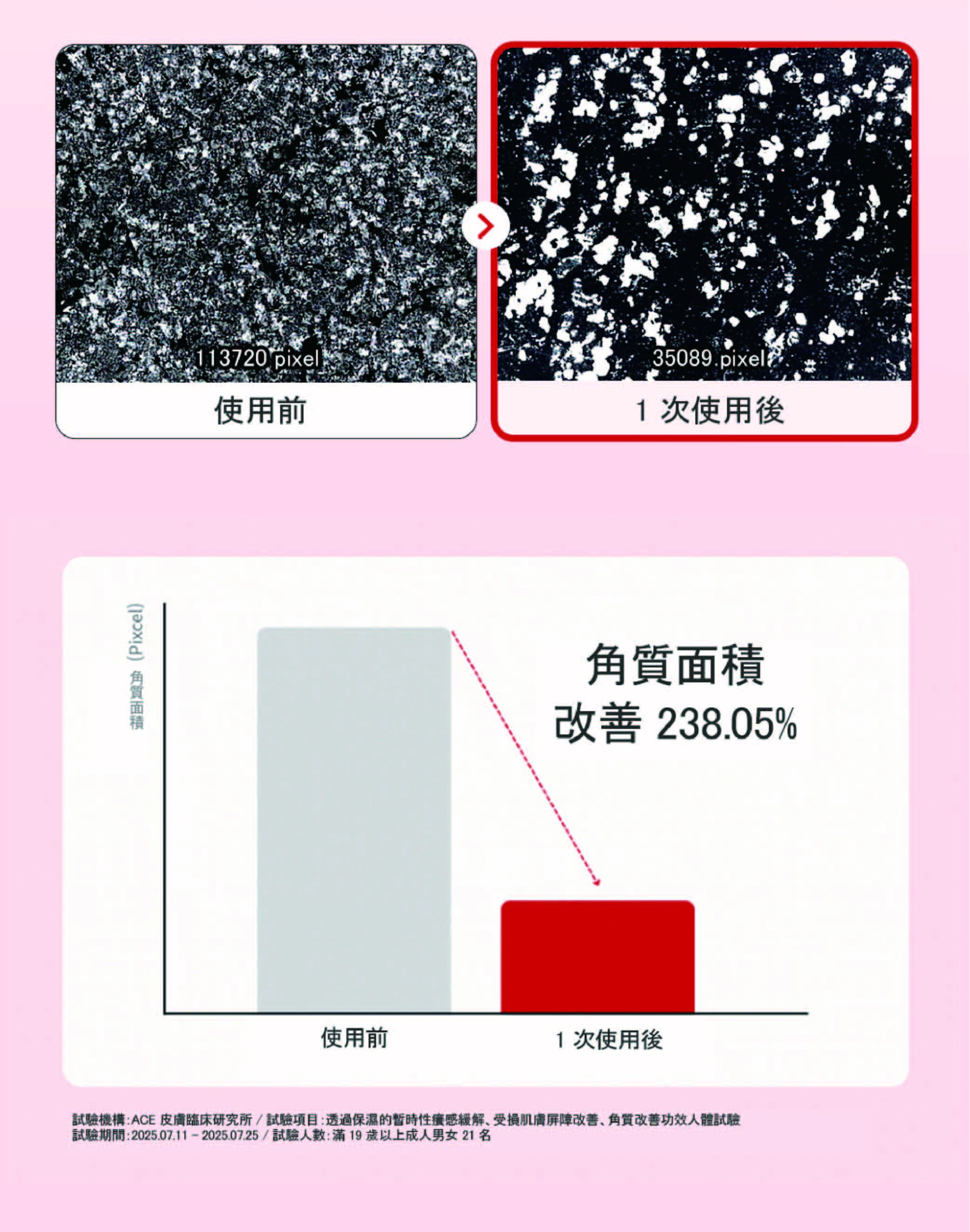 重點改善角質& 乾癢,角質面積改善 238.05%、肌膚乾癢改善 60.44%