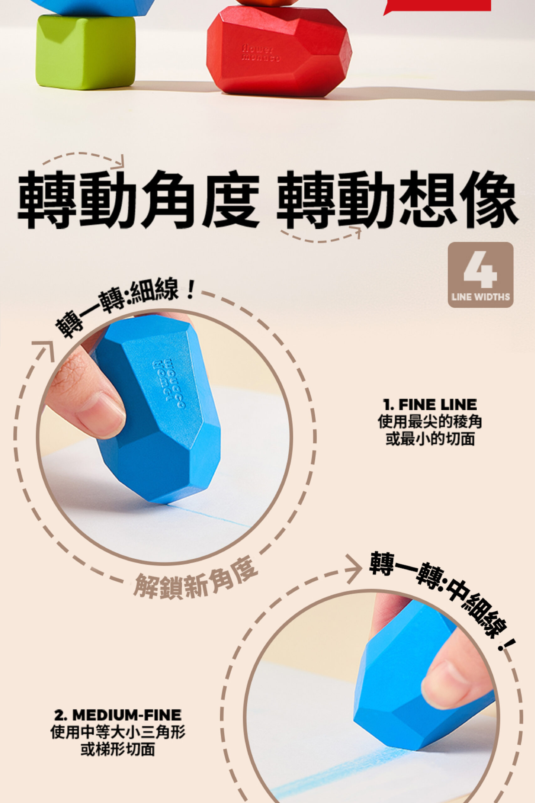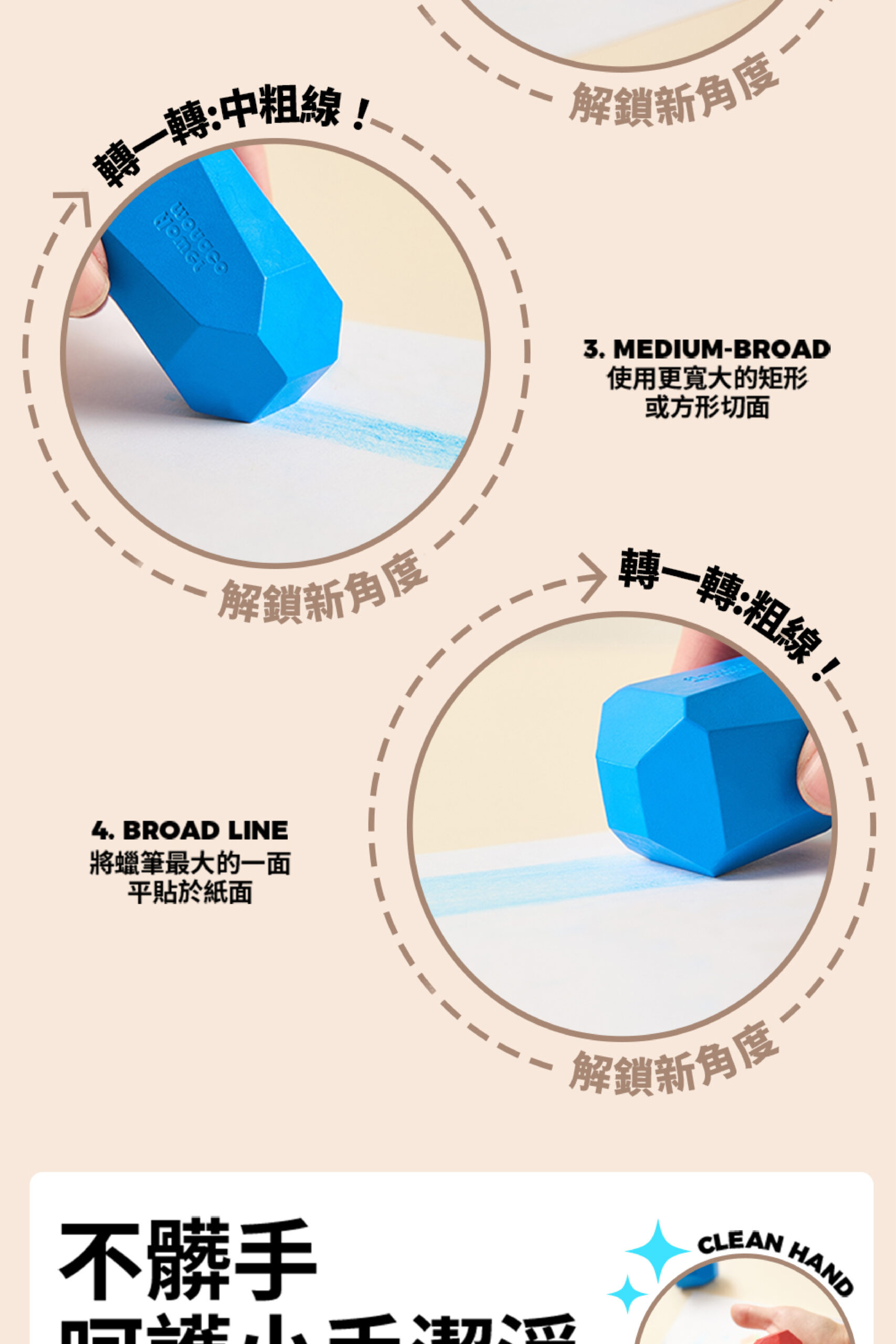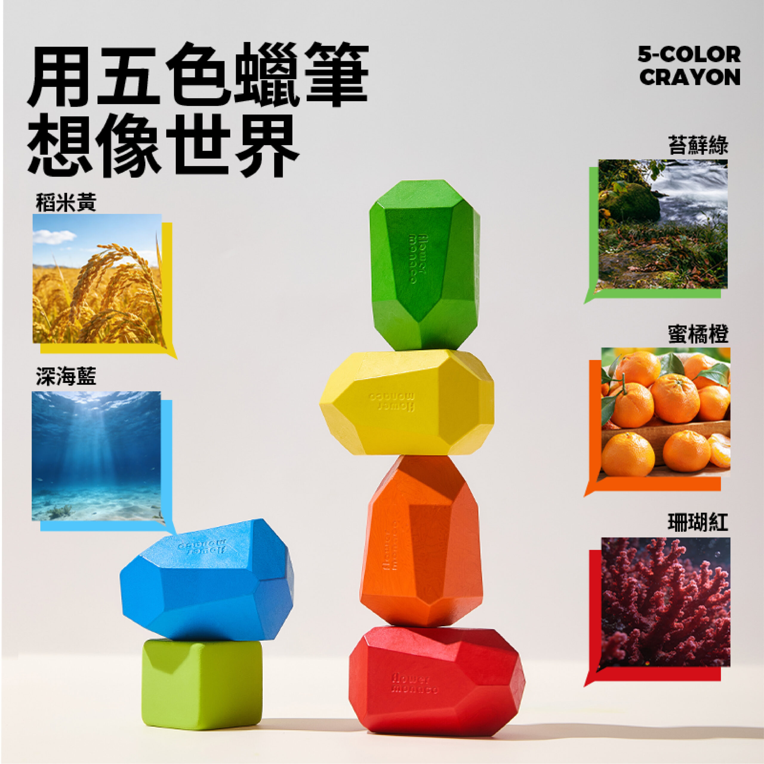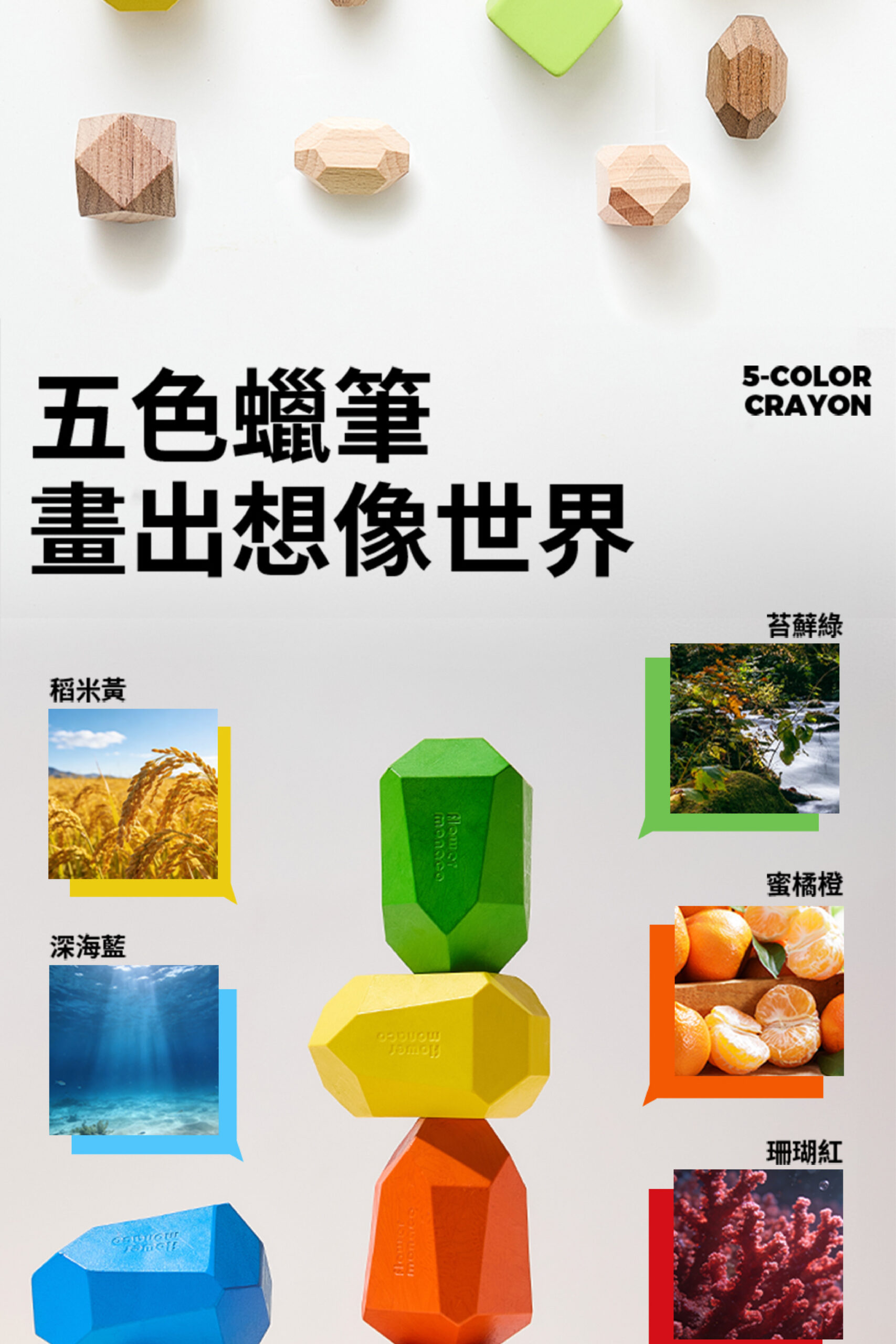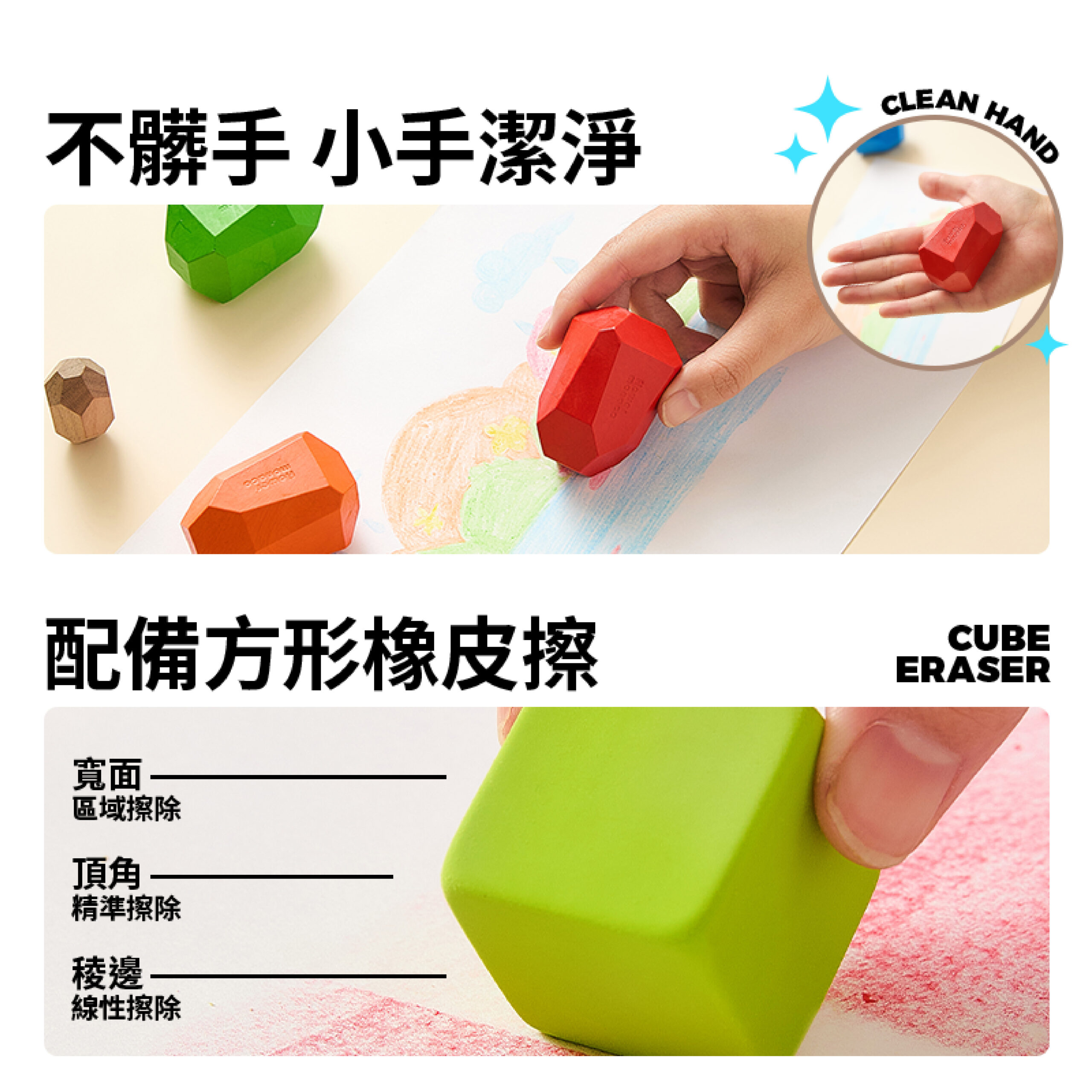 獨特多切面設計,轉一轉就能畫出粗細不同線條 自然訓練手部控制力與運筆穩定度 五種自然系配色,培養孩子色彩感知與美感 不易沾手、不易斷裂,小手抓握更安心 畫畫、堆疊、擦拭一次搞定,在家放電好幫手 送禮有質感,自用更實用 讓孩子在玩樂中建立空間概念與想像力!