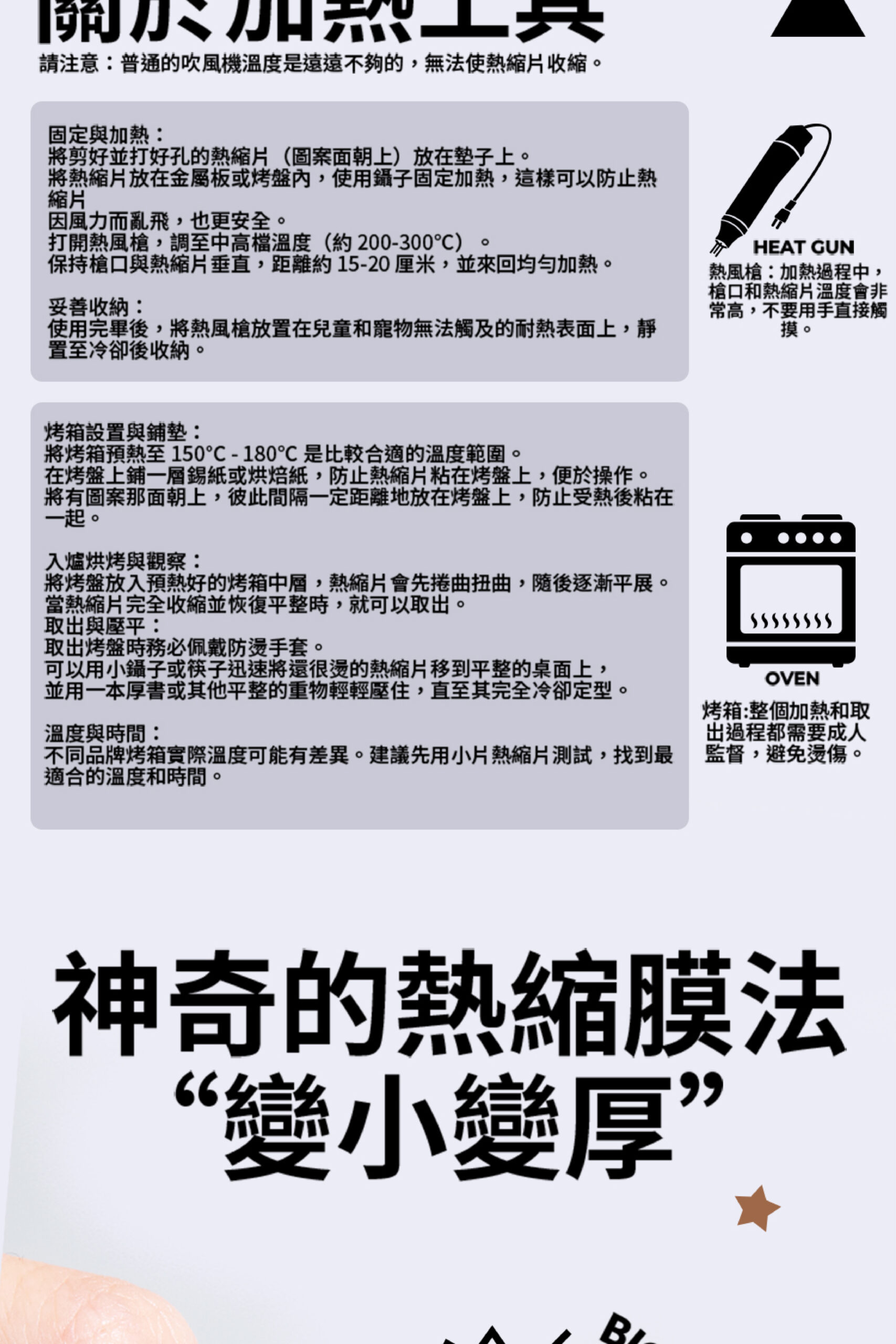 : 只要簡單加熱,畫好的大圖案就會迅速縮小、變厚,奇幻過程讓孩子驚呼連連,超有成就感。