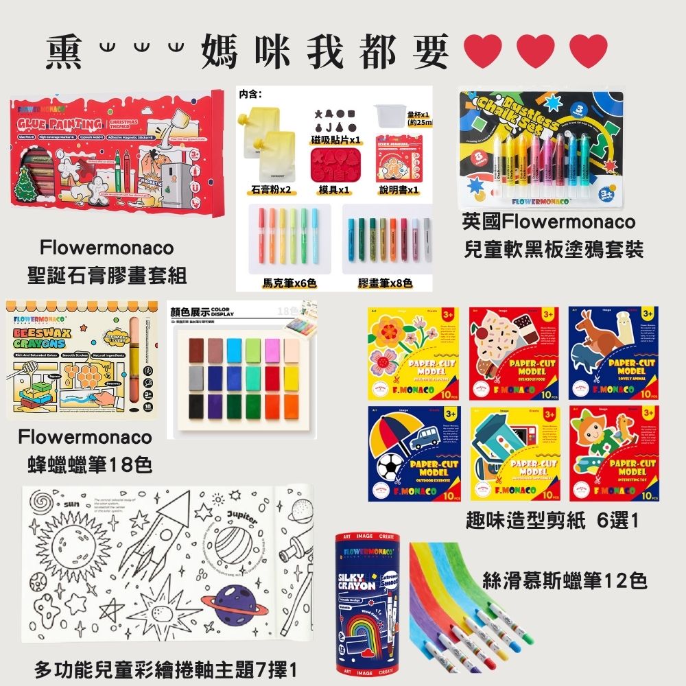 聖誕石膏膠畫套組(工具齊全超省心:石膏粉*2、模具*1 量杯*1 磁吸貼片*1 、膠畫筆*8色、馬克筆*6、說明書*1)